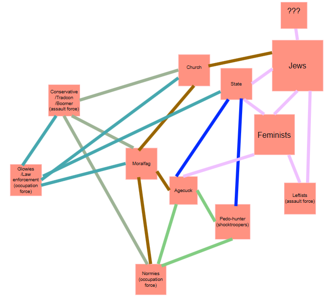 Why glowies connected to moralfagQ_Mooseknuckle wrote: 02 Apr 2026, 23:52 This is how I believe the our enemy forces are organized. Correct me if I'm wrong. A more eye catching flowchart will be made in the future.