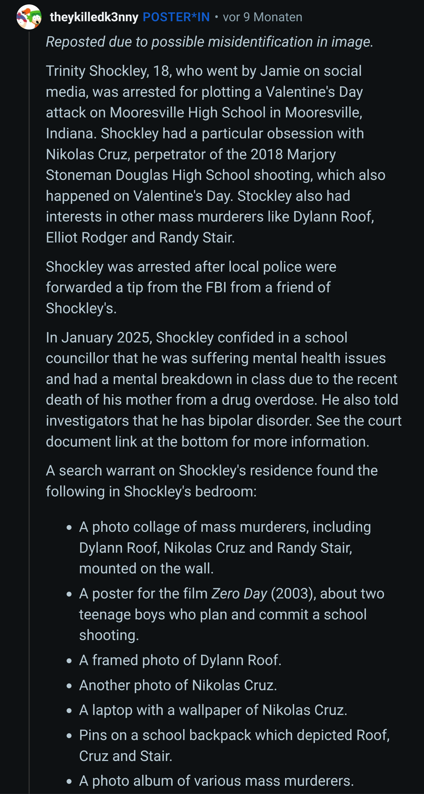 General Alek wrote: 30 Oct 2025, 21:33 There is now news about a femoid who was in love with Nikolas, and talked about carrying out a school shooting in his name