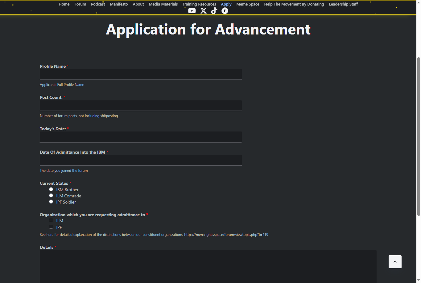 Darth_aurelius wrote: 04 Jul 2025, 11:11 We need to respond to this faggot ASAP. I started listening to the rest of his idiotic and mostly incoherent expletive laced rant and he explicitly states that "they want your name, your email, they want your Twitter username" when in actuality all we ask for is the profile name of the individual who is applying and their time in service. Also this is not for newly registered members but for anyone seeking promotion within the movement.