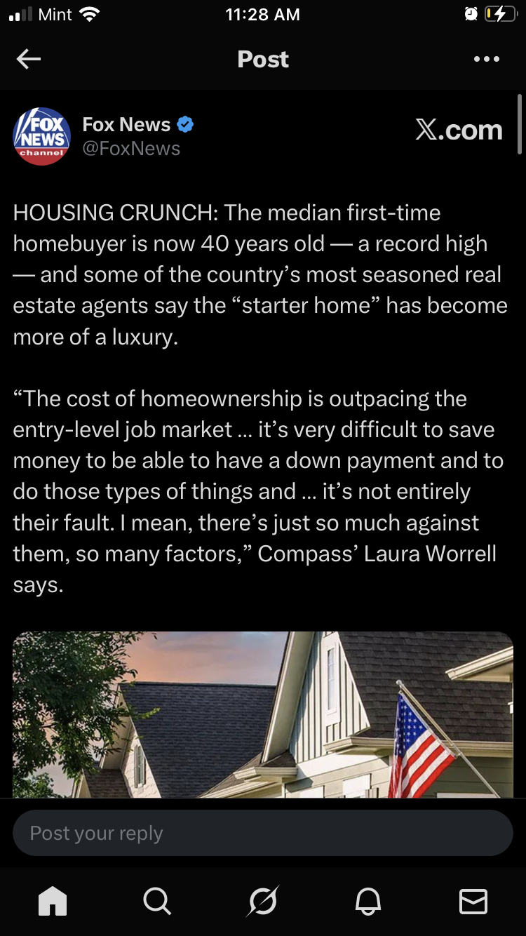 Same. Back in the day you could work a minimum wage job at a factory and afford rent or mortgage on a nice house with no roommates. Fast forward to 2025, you need a college degree just to afford a shack in the hood with no roommates. And yea don’t get me started on women not giving me sex. That’s damn near worse than not being able to afford housing.